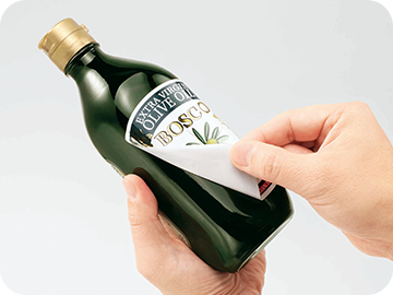 光沢感のあるフィルム素材を使用しています。紙素材のラベルよりもはがしやすく、ボトルをリサイクルするときにも便利です。